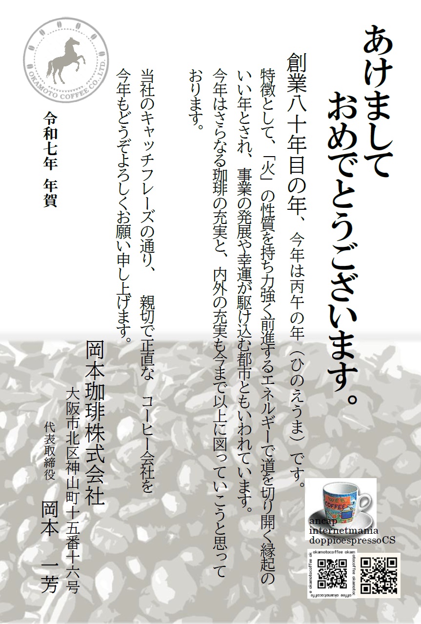 あけましておめでとうございます | 岡本珈琲株式会社は親切で正直な自家焙煎コーヒー専門店です。